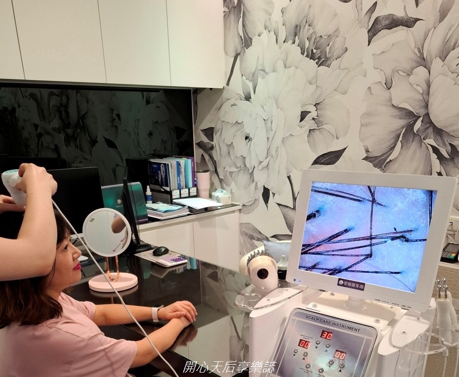 並拍下髮量的密度及髮徑照,全方位檢測,讓我可以清楚了解每吋頭皮的現況及問題
